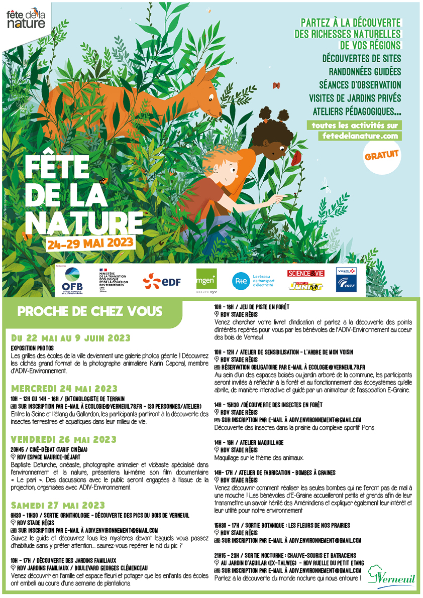 Elle se déroule chaque année aux alentours du 22 mai, date de la journée internationale de la biodiversité. À cette occasion, la ville vous propose des animations et des sorties pour mieux apprécier la diversité et la richesse de la faune et la de la flore vernolienne.