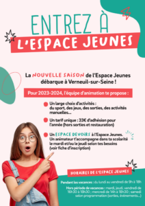 Créé par la Ville et agréé par le ministère de la Jeunesse et des Sports, l’Espace Jeunes est un lieu ouvert à tous les Vernoliens de 11 à 17 ans et où les jeunes se retrouvent, discutent, échangent, se détendent, participent aux animations proposées et à la mise en place de stages, de sorties ou d’autres activités.
